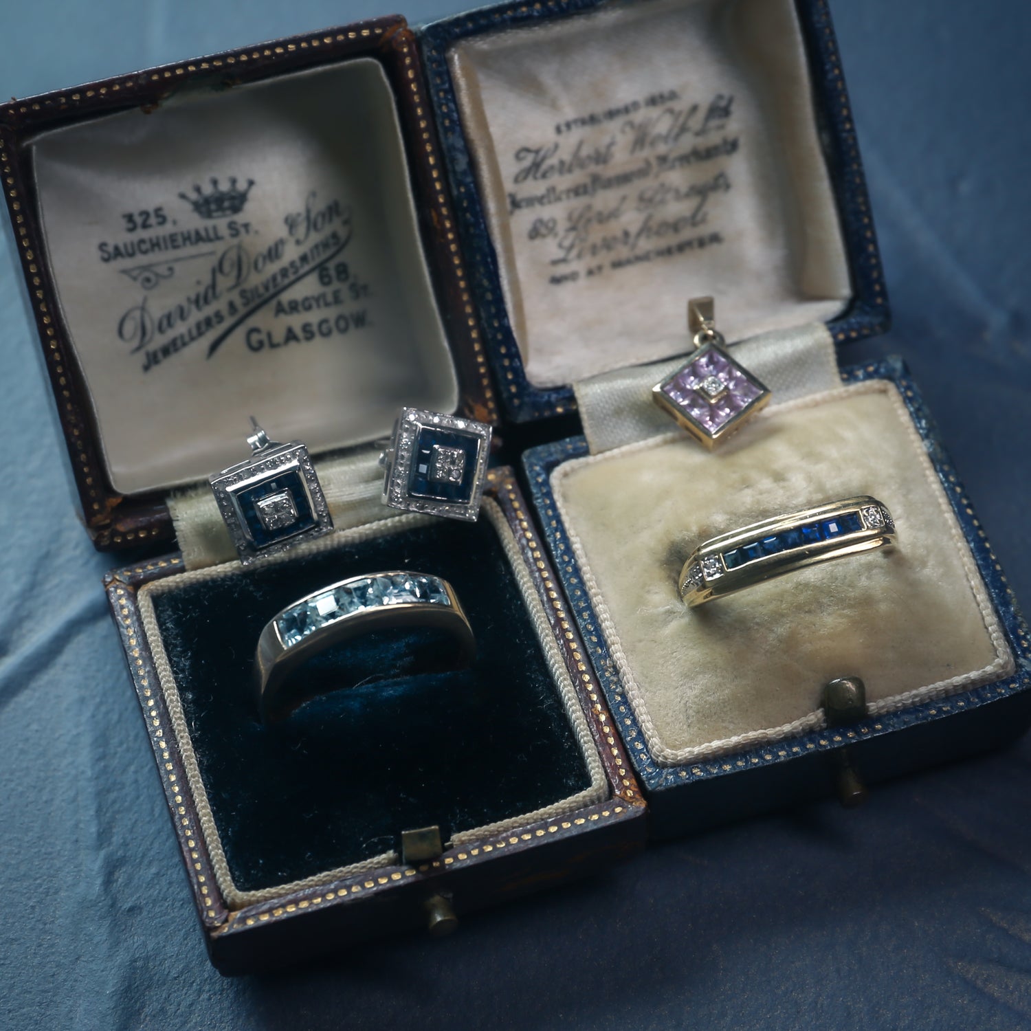アンティークペンダント、アンティークネックレス、アンティークチェーン、ヴィンテージペンダント、ヴィンテージネックレス、ヴィンテージチェーンのコレクション。アンティークリング、ヴィンテージリングのコレクション。地金は18Kゴールドや10Kゴールド、9ctゴールド、プラチナなど。宝石はダイヤモンド、ルビー、サファイア、アメジスト、エメラルド、クォーツ、ブラッドストーン、カーネリアン、パール(真珠)、ガーネット、トパーズ、タンザナイト、クリソベリル、オパール、ムーンストーンなど。ペーストガラスのジュエリーもあります。エドワーディアンやヴィクトリアン、アールデコ、アールヌーヴォー、ジョージアンなど様々な時代に作られたジュエリーが揃っています。