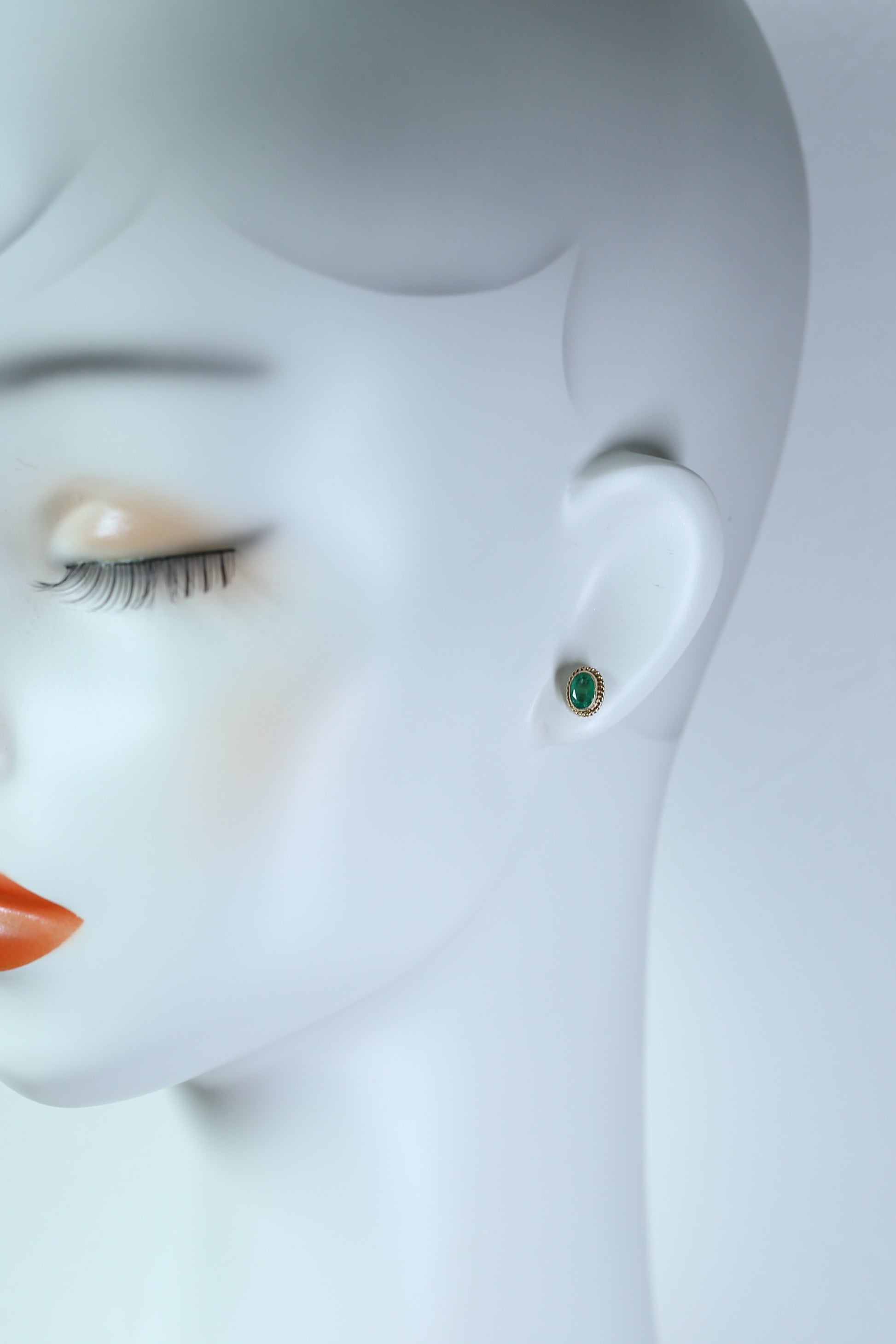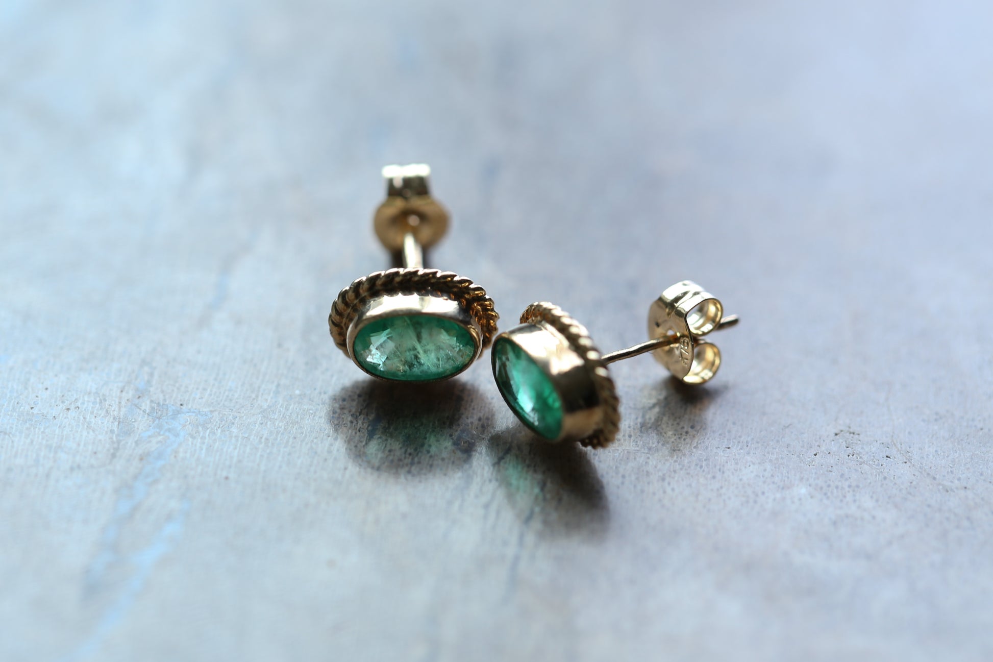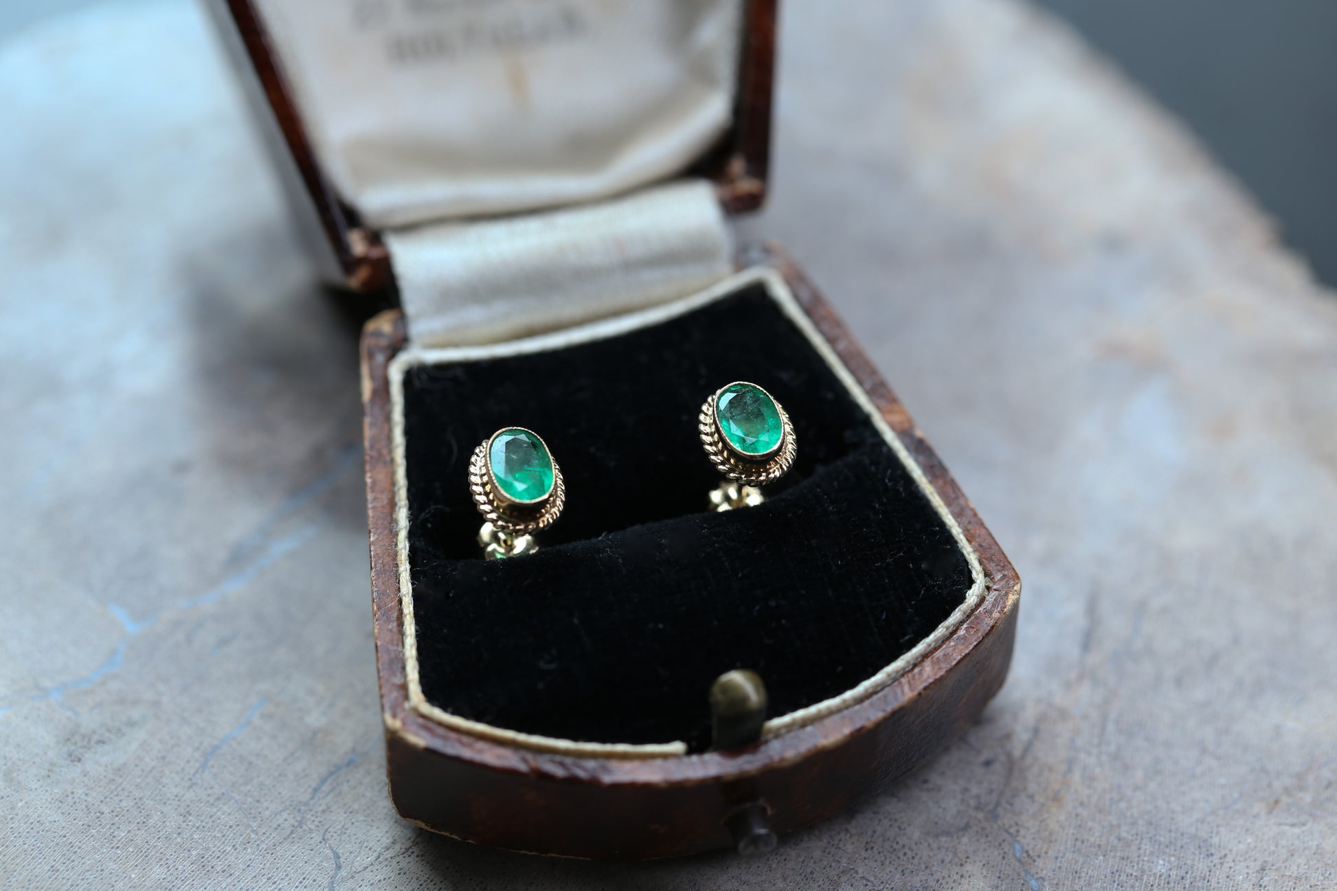 0175_ヴィンテージ エメラルドのシングルストーンピアス